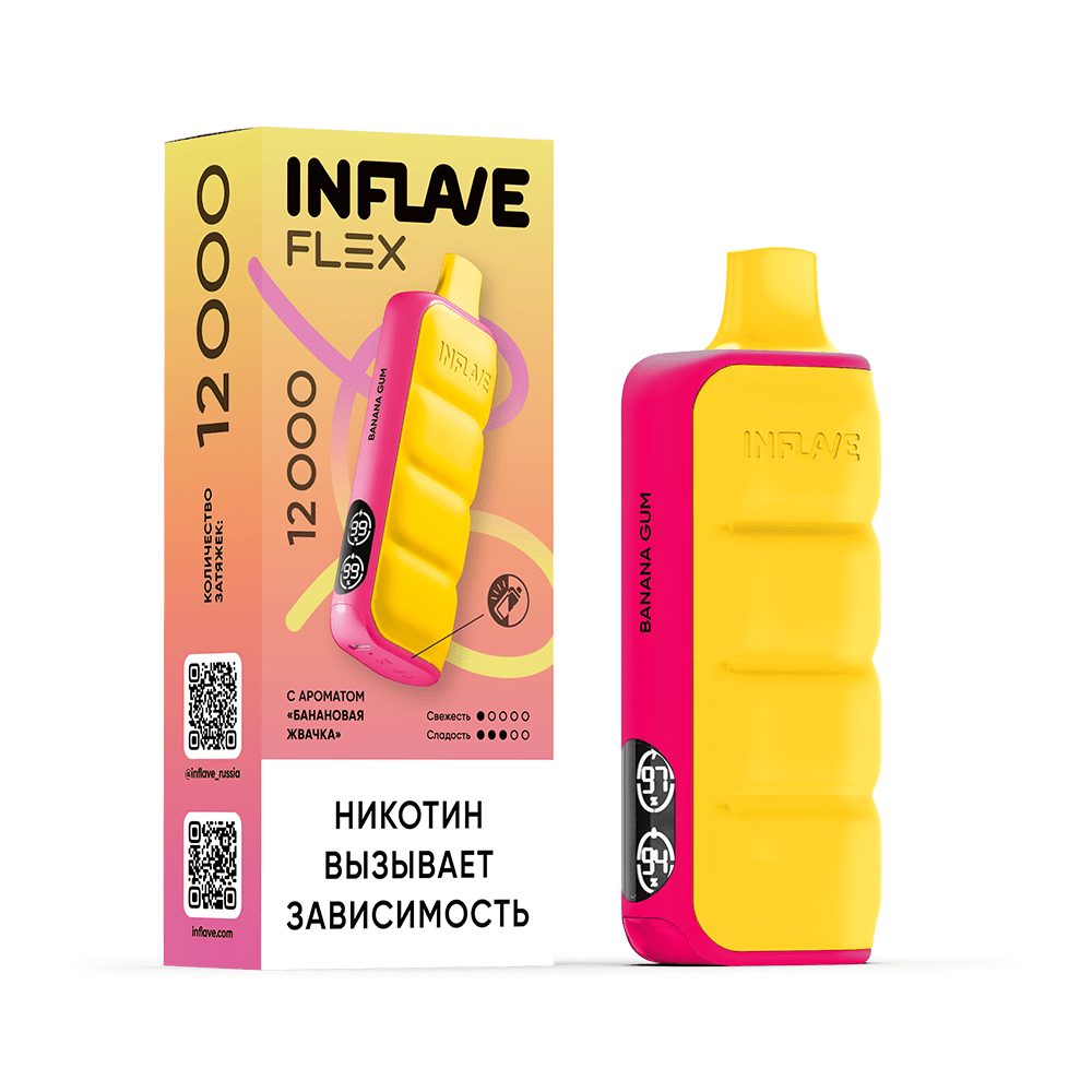 Количество затяжек, шт12000 | Крепость, %2 | ЛинейкаINFLAVE FLEX 12000 |